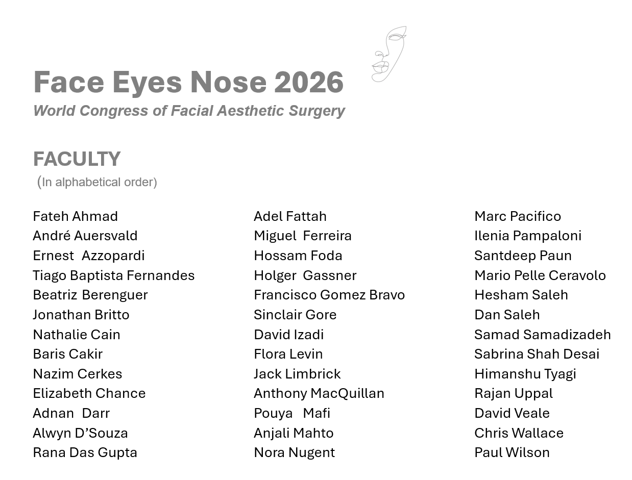 Face, Eyes & Nose is an advanced masterclass in facial surgery. Join the lecture course from the 7 - 8 May 2026 in London followed by the dissection course on the 9 - 10 May 2026 in Coventry.
